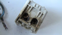 togliendo la calottina che racchiude i contatti ecco che si vede meglio il segno di bruciatura